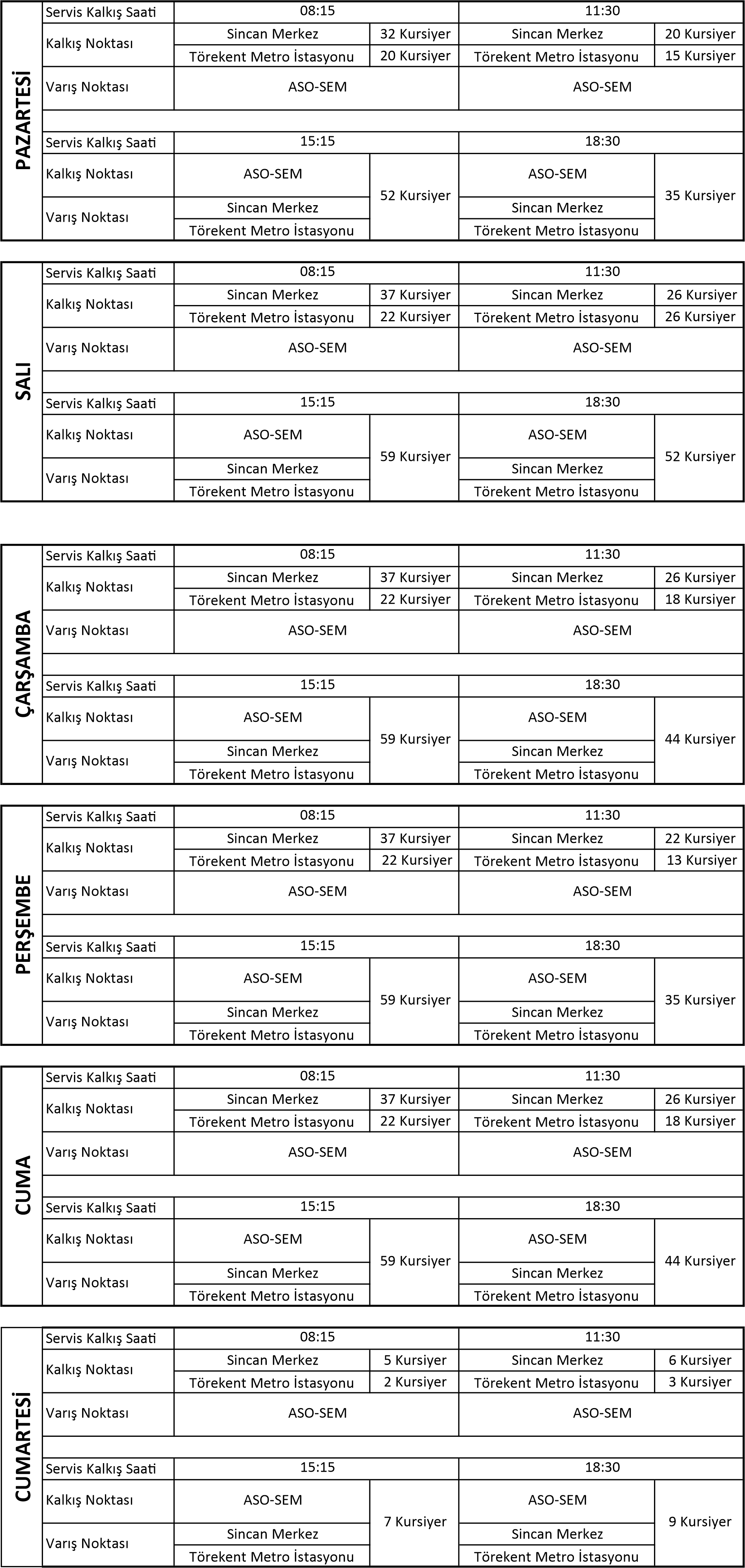 MEGİP-4 İlk 2 Haftalık Kursiyer Servis Programı